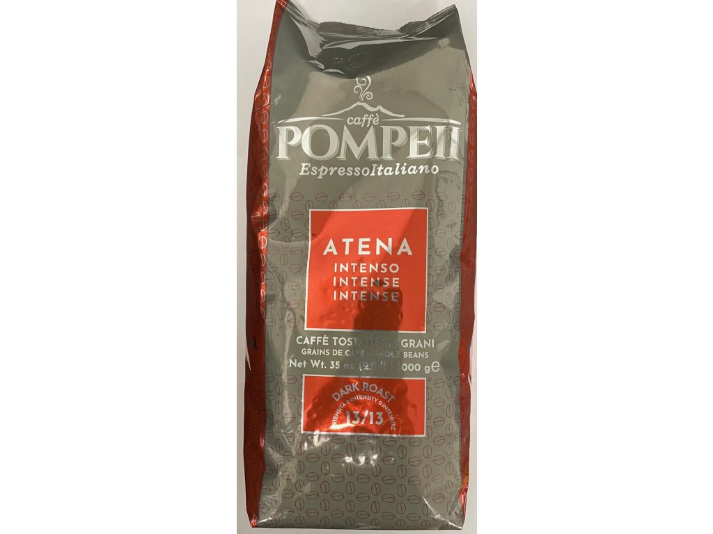 ATENA Forte van Caffe Pompeii is een donker gebrande koffie, waardoor deze een aanhoudende nootachtige en sterke cafeïnesmaak heeft. Het is gemaakt van 70% gewassen Robusta-soorten en 30% Latijns-Amerikaanse Arabica-bonen.