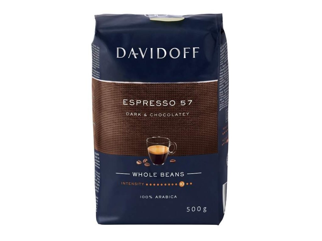 Davidoff Espresso 57 bevat een mix van de beste Arabica-koffiebonen uit Afrika, Latijns-Amerika en de Stille Oceaan.