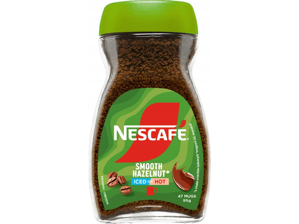 Laat u verwennen door de fluweelzachte smaak van Nescafé Smooth Hazelnut koffie, waarvan het karakter wordt gecompleteerd door het betoverende aroma van geroosterde hazelnoten. Deze drank combineert op harmonieuze wijze de intensiteit van traditionele Nescafé koffie met delicate nootachtige tonen, waardoor het de perfecte begeleider is voor elk moment van de dag. Dankzij de praktische glazen pot van 95 g die de koffie vers houdt, is het zetten van uw favoriete kopje altijd snel en gemakkelijk.