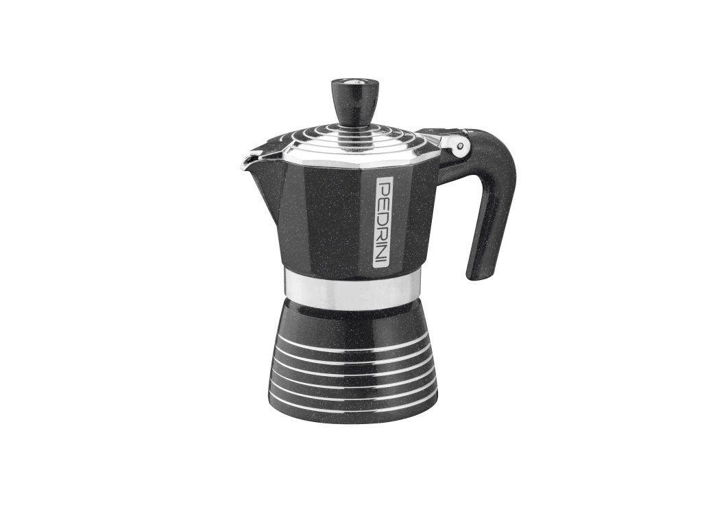 Infinity van het Italiaanse merk Pedrini is een stijlvolle mokkapot gemaakt van hoogwaardig aluminium van voedingskwaliteit . Het oppervlak is versierd met een glanzende, hittebestendige glazuurlaag die het materiaal beschermt tegen aantasting en kwaliteitsverlies, zelfs bij langdurig gebruik. Elegante cirkelvormige patronen op het deksel en de bodem geven de pot een touch die niet alleen u, maar ook al uw gasten zal verbazen.